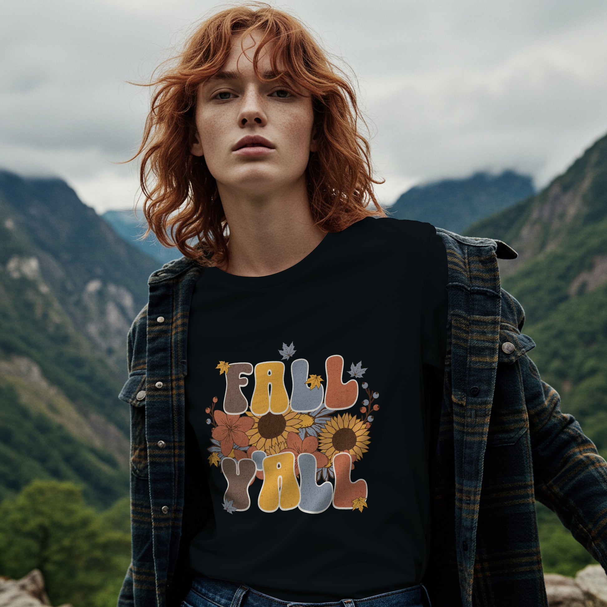 This "Fall Y'all" seasonal graphic tee is printed on a high-quality soft tee, made from 100% preshrunk cotton for a soft, comfortable fit that lasts. *Seasonal Shirt