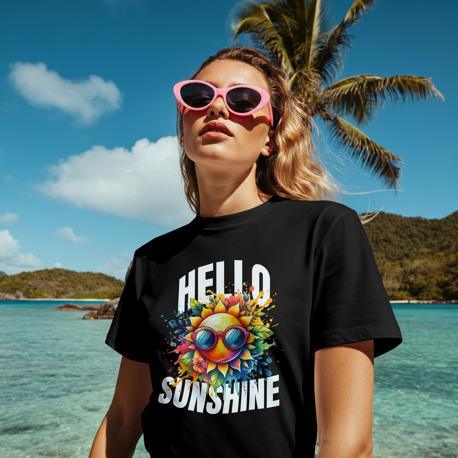 This “Hello Sunshine" fun and colorful, graphic tee is printed on a high-quality soft tee, made from 100% preshrunk cotton for a soft, comfortable fit that lasts.