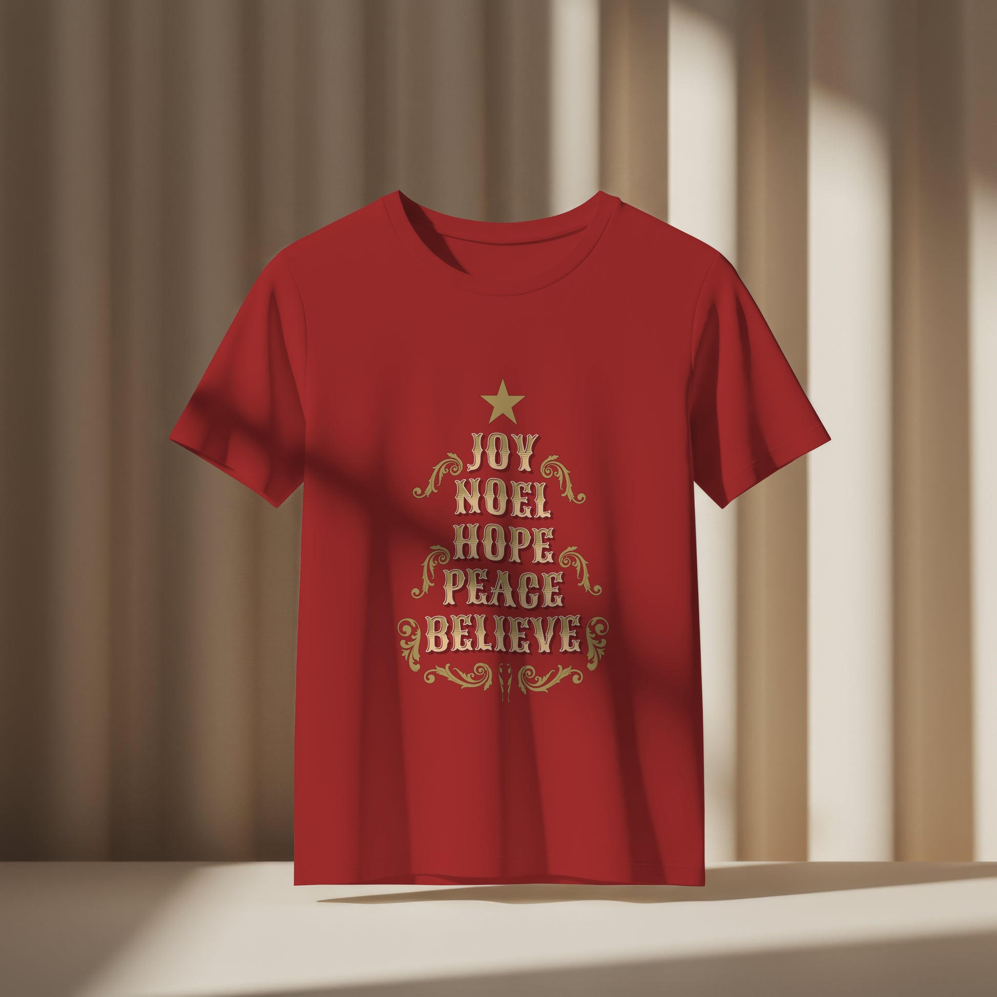 Joy, Noel, Hope, Peace, Believe Christmas Graphic T-Shirt